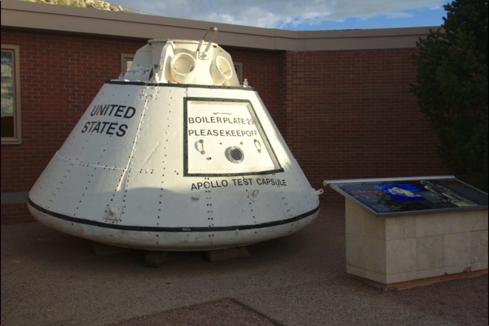 Ein weiteres interessantes Exponat ist eine Apollo-Testkapsel, die beim Test der Wasserung der Kapseln zum Einsatz kam. Da wir nicht viel Zeit hatten (wir kamen ca. 18:20 Uhr am Krater an und das Visitor-Center schloß um 19 Uhr), konnte ich mir den Hinweistext auf der dazugehörigen Infotafel noch nicht durchlesen, habe sie aber fotografiert und werde sie mir nach dem Urlaub noch mal genau anschauen.