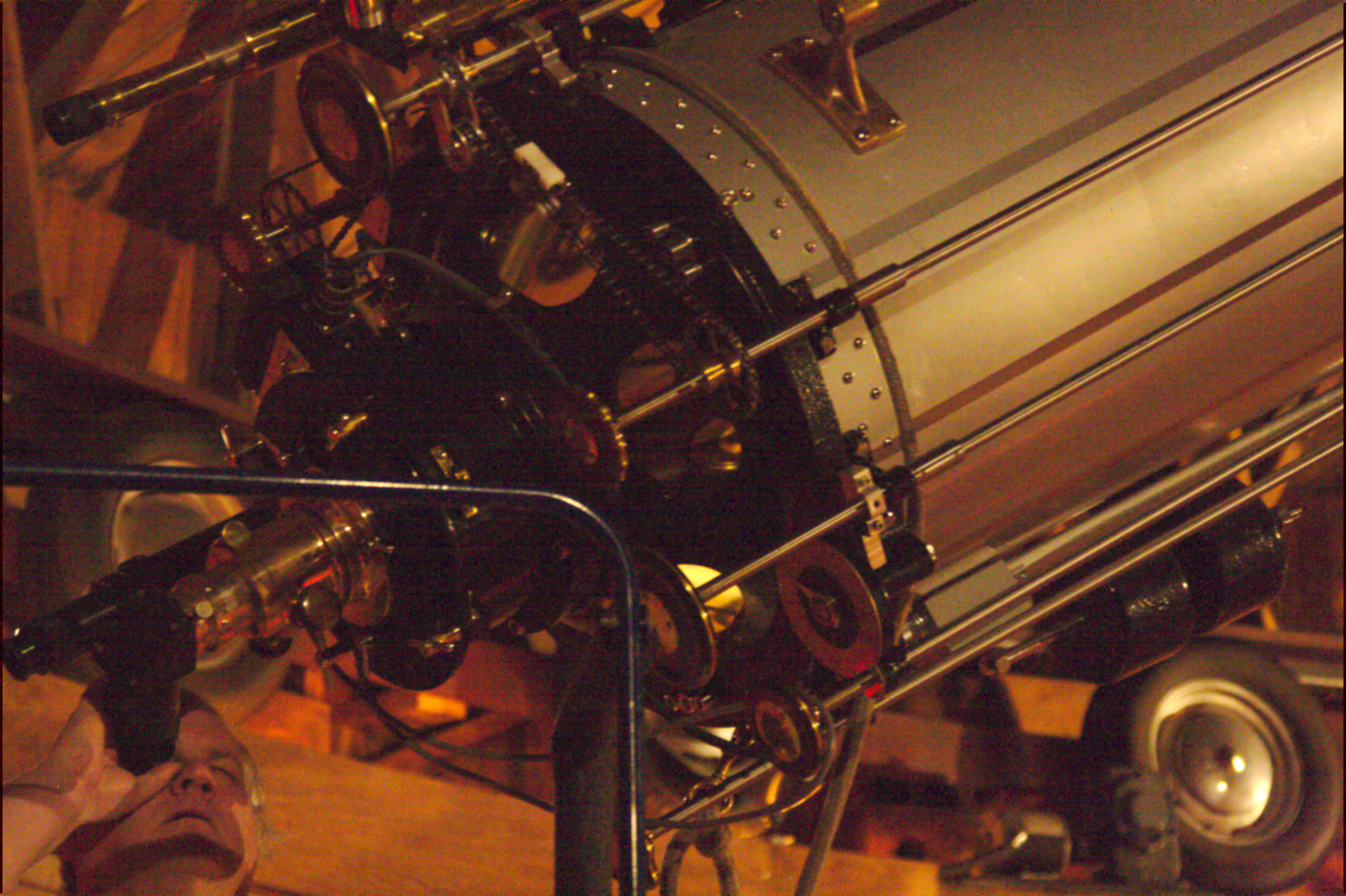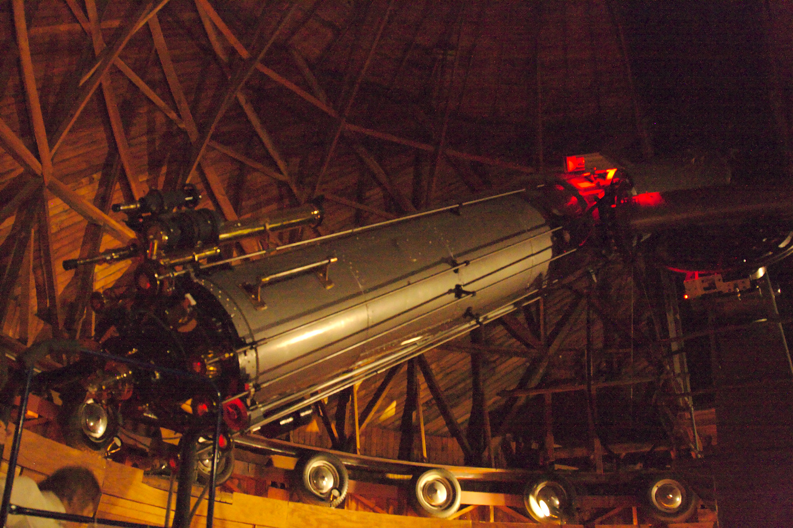 Das Highlight hoben wir uns bis zum Schluß auf: der Blick durch das Clarck-Teleskop. Ein 24″ Linsenteleskop mit ca. 9m Brennweite. Das Teleskop hatten sie gerade auf den Saturn gerichtet. Das Vernichtende Urteil eines unserer Gruppenmitglieder: „da hab ich den Saturn in einem 8″ Teleskop aber schon schöner gesehen“ – da hat er sicher nicht unrecht, aber dazwischen liegen etwas mehr als 100 Jahre technologische Entwicklung! Mit diesem Gedanken im Hinterkopf bietet der Refraktor ein super Bild! Die Cassini-Teilung (Link zu Wikipedia) war problemlos zu erkennen und auch mindestens ein Wolkenband konnte ich leicht identifizieren.