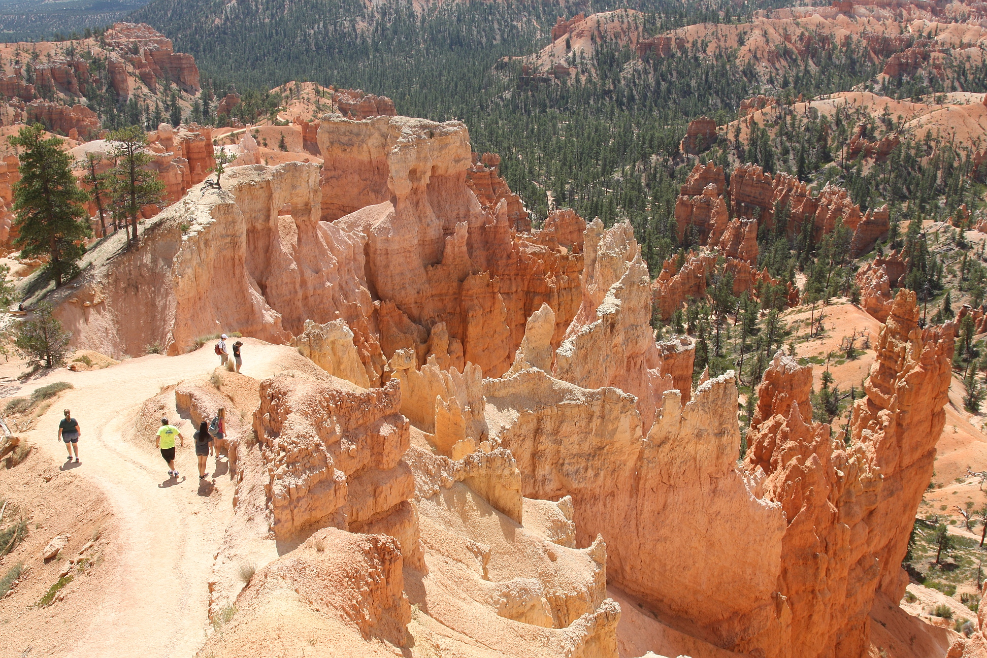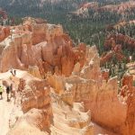 Innerhalb des Bryce Canyon verlaufen einige Wanderwege. Die Dimensionen des Canyons konnte man immer dann abschätzen, wenn man man einige Wanderer entdecken konnte, deren Größe man in Relation zu den Felsen setzen konnte. Hier muß man zu dem Schluß kommen, daß wir viiiel zu kurz an diesem Ort waren. Der Blick vom Innern des Canyons auf diese riesigen Felsformationen muß unglaublich eindrucksvoll sein. Wer also eine Reise in diese Gegend plant, sollte für den Bryce-Canon mindestens einen kompletten, besser zwei Tage einplanen und ein paar Wanderschuhe im Gepäck haben.