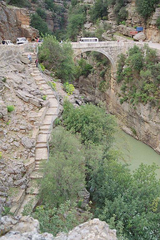 Ein Einheimischer, mit dem wir uns unterhielten, erzählte uns eine etwas andere Geschichte. Ein voll beladener LKW wollte über die Brücke fahren. Leider war die Brücke der Belastung nicht gewachsen und stürzte ein, wobei sie den LKW samt Fahrer mit in die Tiefe riss. Daraufhin wurden die Steinblöcke aus dem Fluss geborgen und die Brücke soweit möglich mit den originalen Steinquadern wieder aufgebaut. Nach dieser Erzählung war mir auch klar, warum einige Passagiere aus dem Bus ausgestiegen sind.