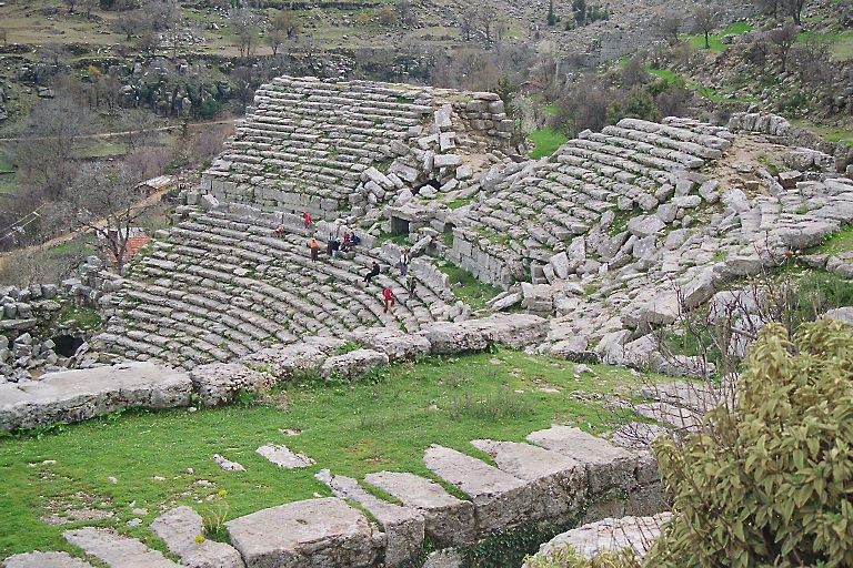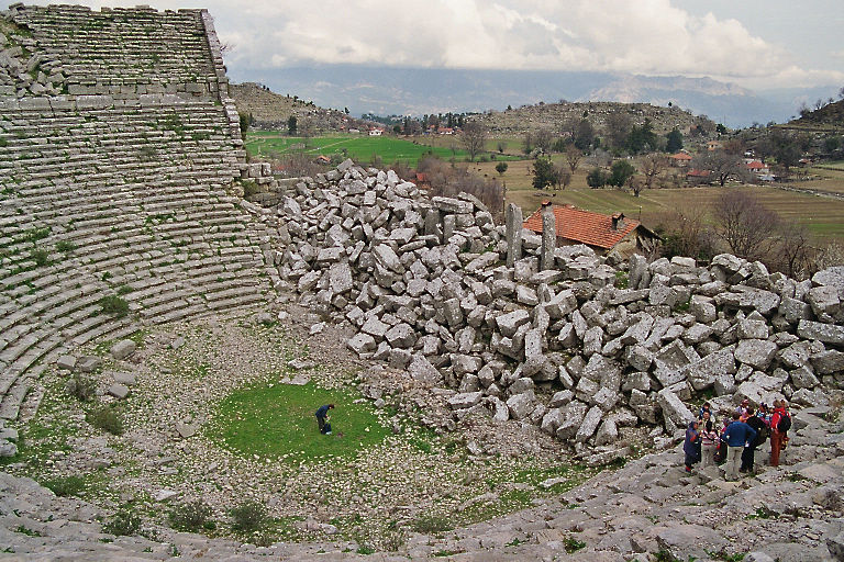 Der Ausflug nach Selge war wieder sehr interessant und ereignisreich. Nach der Sonnenfinsternis, war der Ausflug nach Selge der prägendste Eindruck der Reise. Selge (in Google Maps wird es Altinkaya genannt) ist ein kleines verschlafenes Bergdorf mitten im Nichts in ca. 1000m Höhe. Früher war an dieser Stelle eine römische Siedlung, was das teilweise erhaltene Amphitheater eindrucksvoll belegt.