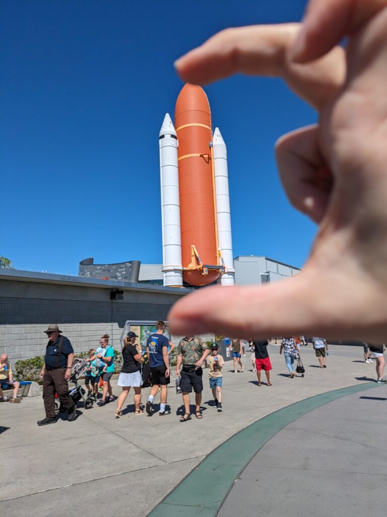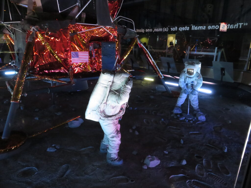 Wir waren eigentlich nur in 4 Bereichen: Apollo-Mssionen, Space Shuttle, Mars exploration und Rocket Garden. Zu jedem einzelnen ließe sich locker ein eigener Artikel schreiben. Von dem was ich gesehen habe, war Space Shuttle am eindrucksvollsten. In der Ausstellung steht die Atlantis. Ja, das Original, kein Modell oder Nachbildung oder etwas ähnliches. Da steht man einfach keine 3 Meter von einem Stück Raumfahrtgeschichte entfernt. Einfach Wahnsinn. Ich kenne schon die Buran, die in Sinsheim ist, aber ich hatte das Gefühl, das Shuttle war größer. Die Art und Weise, wie es präsentiert wird ist auch nicht vergleichbar mit Sinsheim. Das Shuttle ist schräg aufgehängt und es führt ein Weg komplett einmal um das Shuttle herum, wobei es gleichzeitig auch nach oben geht. So kann man es von jeder Seite betrachten. Die Größe kann man am besten beurteilen, wenn man drunter steht.