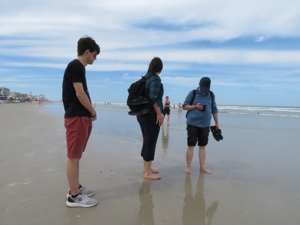 Dort angekommen hatten wir ein kleines Problem, nämlich einen Parkplatz für das Auto finden. Wir hatten etwas unterschätzt, dass hier Ostersamstag einiges los ist. Irgendwann hatten wir einen Parkplatz gefunden und sind zum Strand gelaufen. Da folgte der erste kleine Schock – da fahren Autos. Der Sand ist so fest, dass Auto da problemlos lang fahren können. Tja, das typische Klischee eines Amis erfüllt: Ja keinen Schritt zu viel machen und mit dem Auto bis AUF den Strand fahren. Das Wasser war angenehm warm (22°C). Wir sind aber nur etwas am Strand entlang spaziert und mit den Beinen im Wasser gewesen.